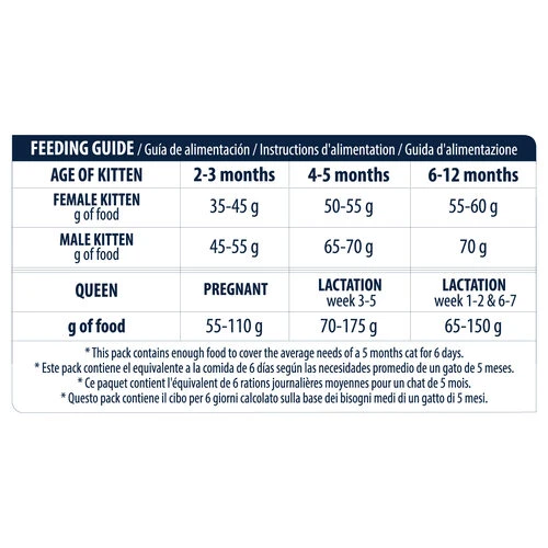 Dieses Futter von Affinity unterstützt Ihr Kätzchen während seines ersten Lebensjahres, wenn es die meisten körperlichen Veränderungen durchläuft. Das Futter unterstützt das Wachstum Ihrer Katze und die Gesundheit der Mutterkatze während der Trächtigkeit und der Stillzeit. Die Rezeptur mit Nukleotiden, die auch in der Muttermilch enthalten sind, unterstützt das Wachstum. Sie helfen auch bei der Entwicklung des Gehirns und der Augen, zusammen mit Zusatzstoffen wie Omega 3 und Taurin. Außerdem werden die natürlichen Abwehrkräfte des Kätzchens gestärkt und die Kombination aus Mineralien und Inhaltsstoffen sorgt für einen optimalen Harn-pH-Wert, für ein gesundes Milieu in der Blase.