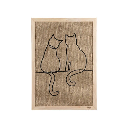 Mit diesem Katzenkratzbrett von Designed by Lotte holen Sie sich ein echtes Designobjekt in Ihr Zuhause. Das Kratzbrett hat einen Aufdruck von zwei Katzen in feiner Ausrichtung, umgeben von einem Rahmen aus Kautschukbaumholz. Es sieht also aus wie ein Gemälde, das zu Ihrer Einrichtung passt. Das Kratzbrett dient als Kratzbaum und besteht aus einer Sisalmatte, die extra groß ist. So hat Ihre Katze genügend Platz zum Kratzen. Der Rahmen aus Gummibaumholz hat eine schöne helle, cremefarbene Farbe, die zu jeder Einrichtung passt.